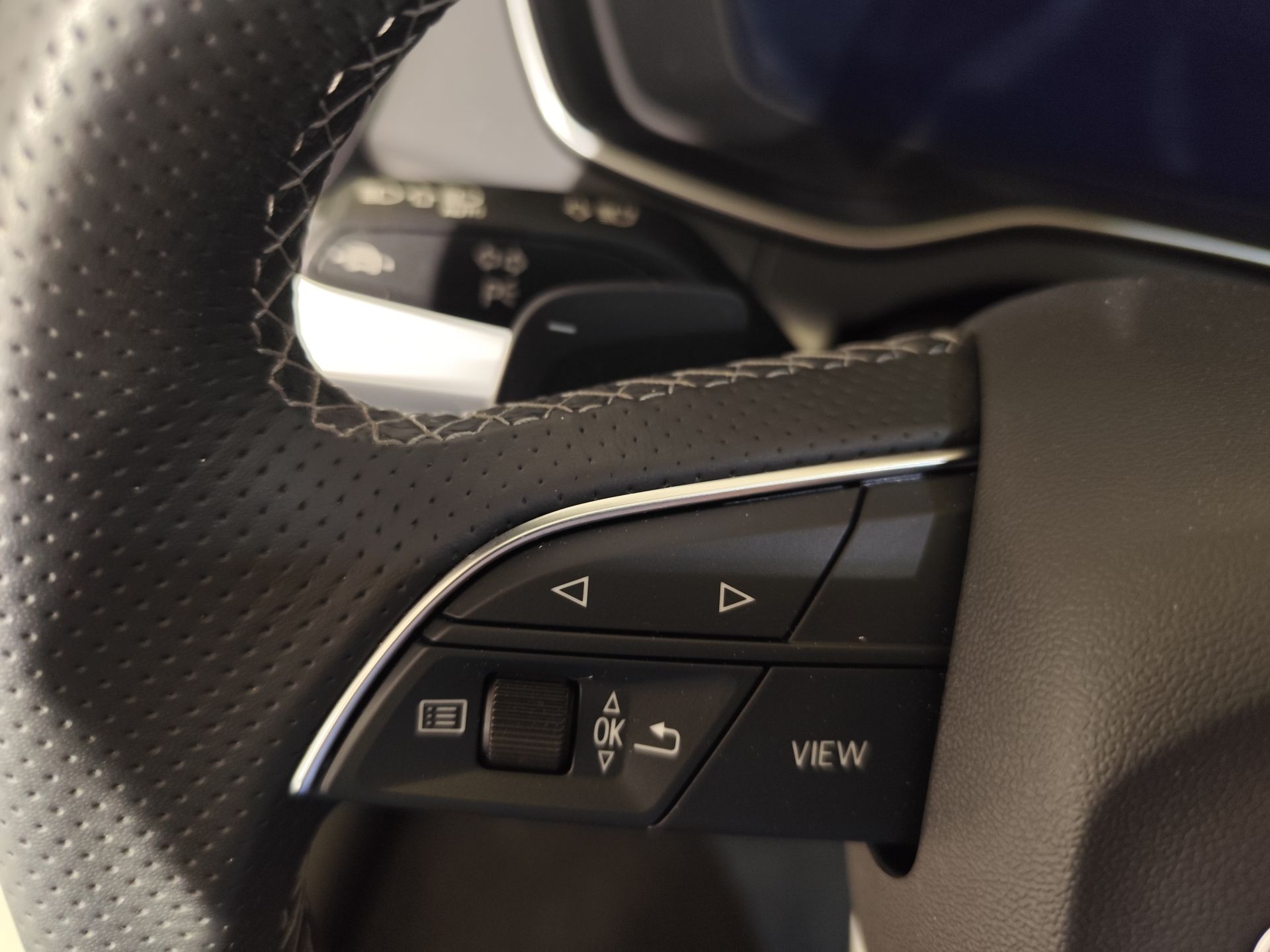 - Volante multi-función revestido de cuero ajustable en altura y en profundidad