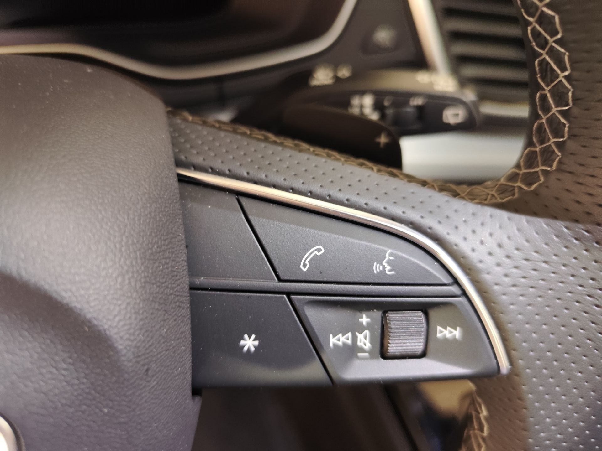 - Volante de cuero contorno deportivo, 3 radios, achatado en la parte inferior, con multifunción plus