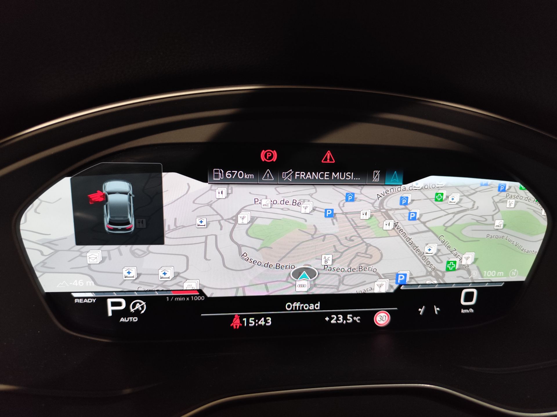 - Sistema de alarma de colisión: activa las luces de freno con asistencia de frenado, sistema antiatropello peatones/ciclistas, monitorización del conductor y frenado a baja velocidad aviso visual/ acústico, distancia programable, funciona por encima de 130 km/h / 78 mph, funciona por encima de 50 km/h / 30 mph y funciona por debajo de 50 km/h / 30 mph