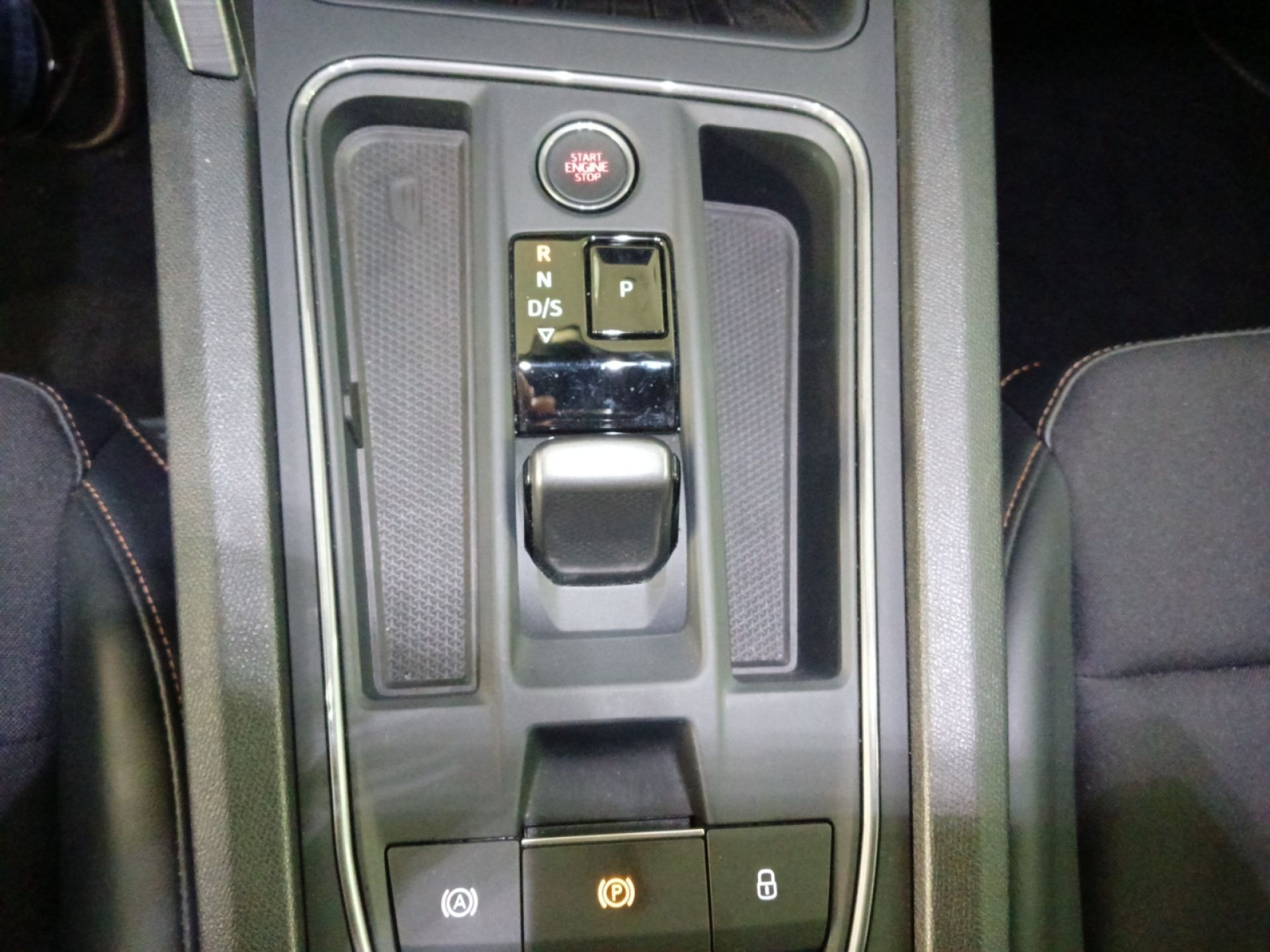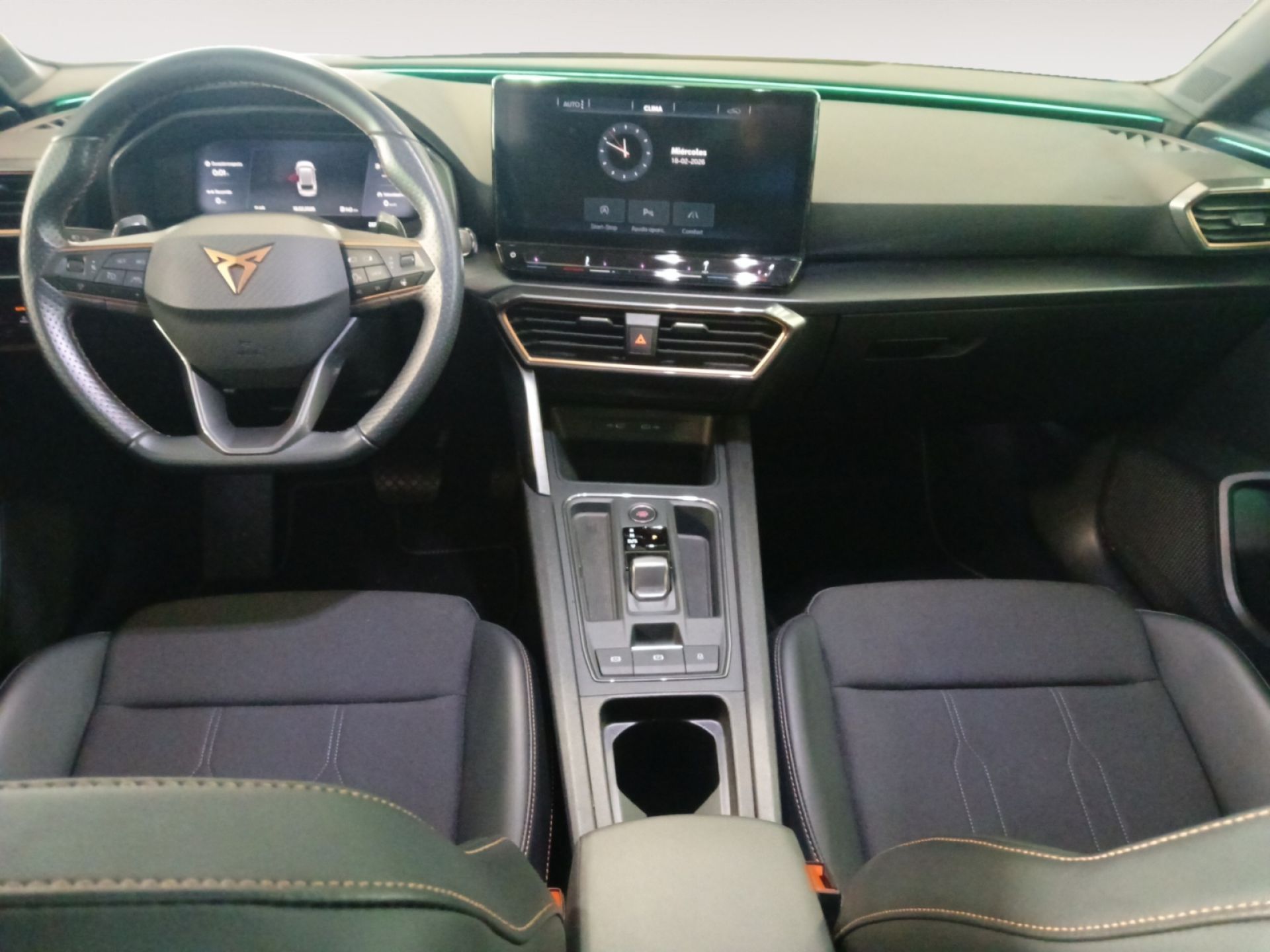 - Asientos de tela (material principal) y de cuero sintético (material secundario)